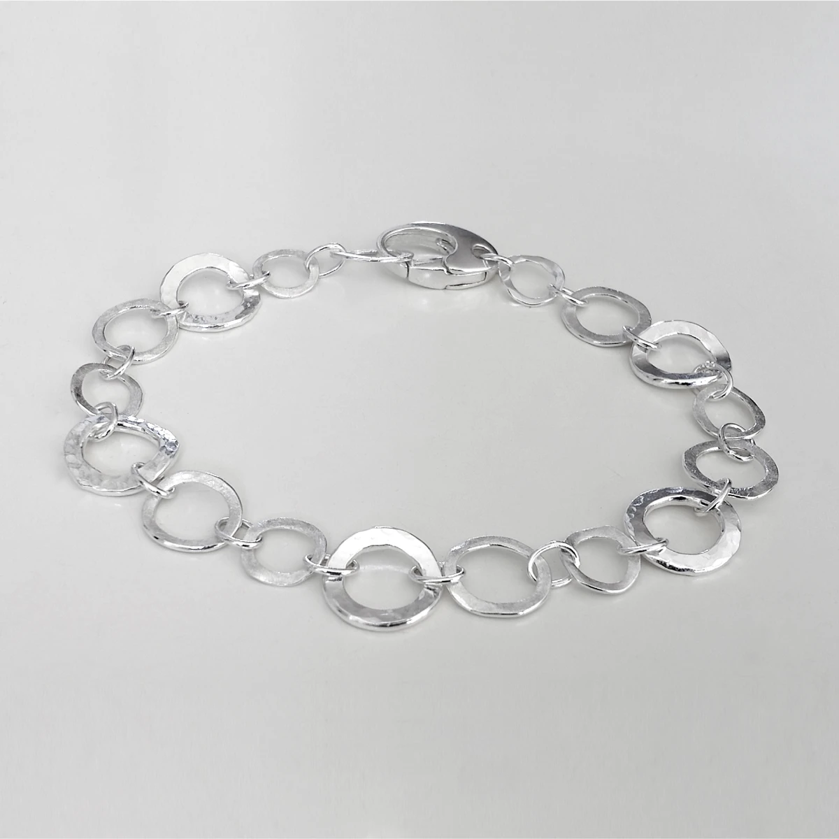 heavy gauge sterling silver jump rings, soldered and hammered for texture with oval lobster clasps, 7.5"