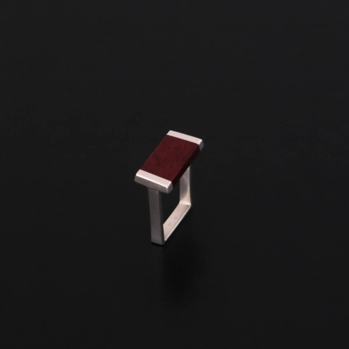 two rings made from purple heart and sterling silver; i favor square rings for their more versatile fit