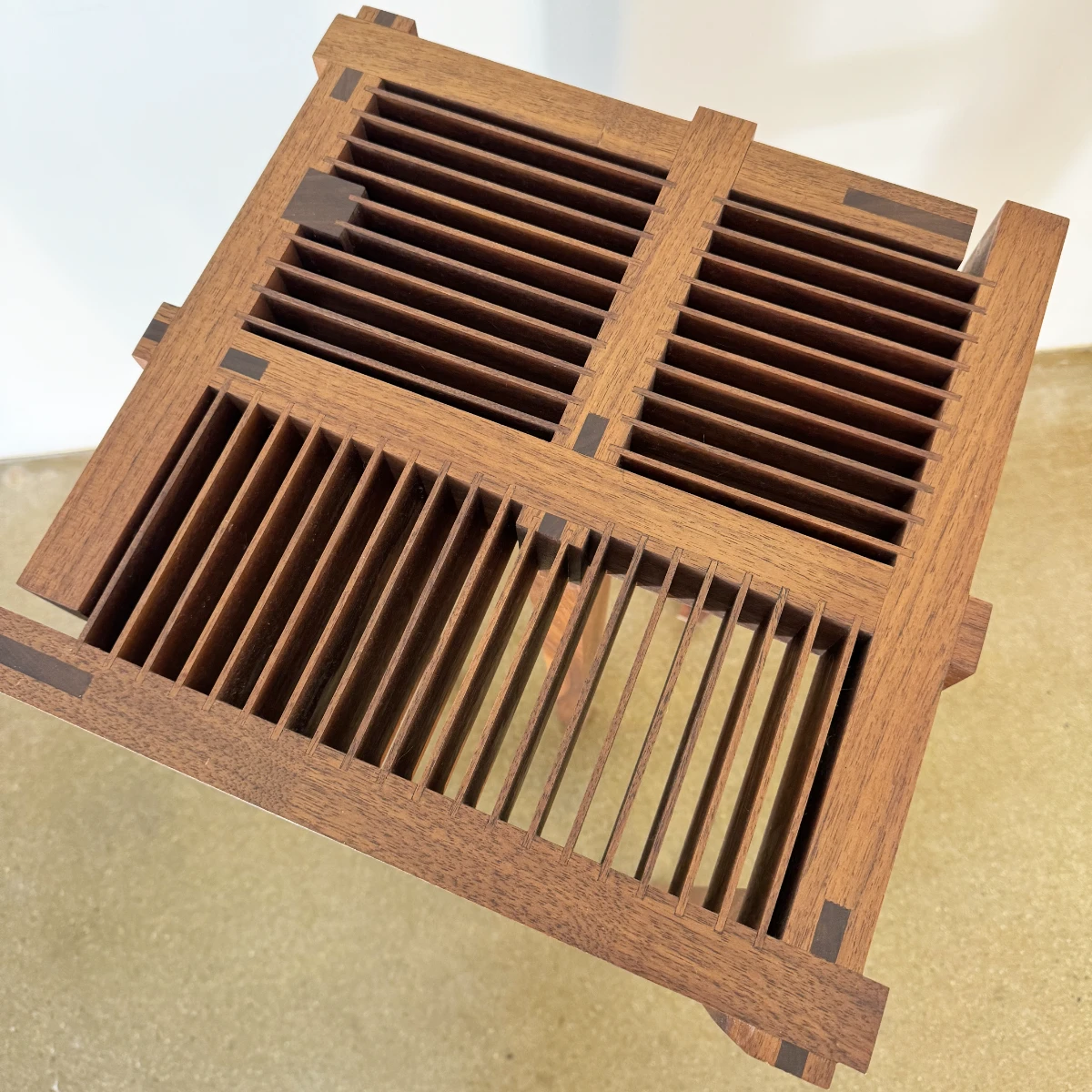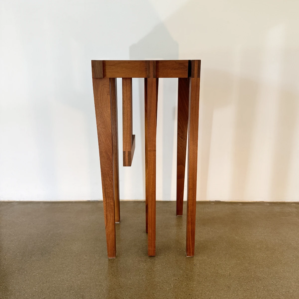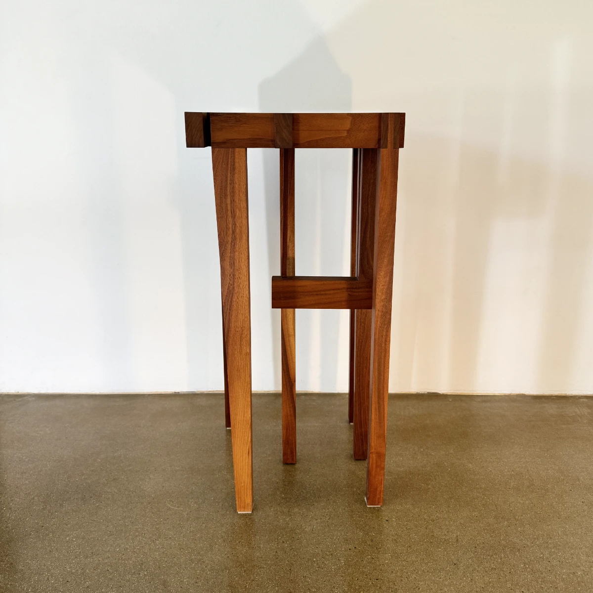 a walnut side table based on the number 3; all measurements, width, lengths, thicknesses, spaces, angles, cross sections, etc., are a multiple of 3.